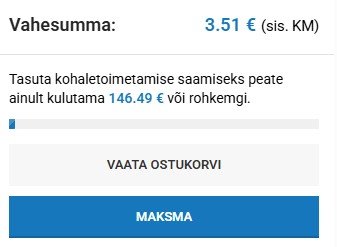 - Linn, tänav, maja number → (Aadress peab olema täpne, et kuller saaks kauba koju toimetada);