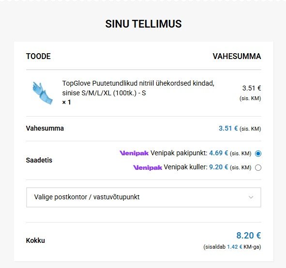 Valige teile kõige sobivam tarneviis. Kui valite pakiautomaadi, siis allpool (Valige pakiautomaat / kättesaamispunkt).