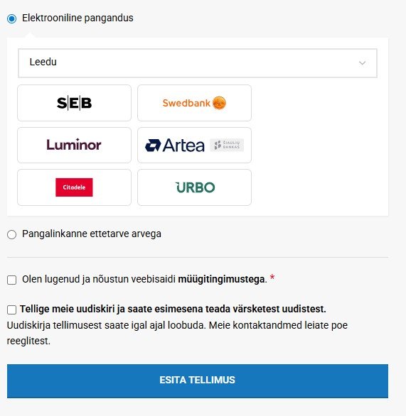 Ostu alustades suunatakse teid tellimuse vormistamise lehele, kus palume sisestada vajalikud andmed:
