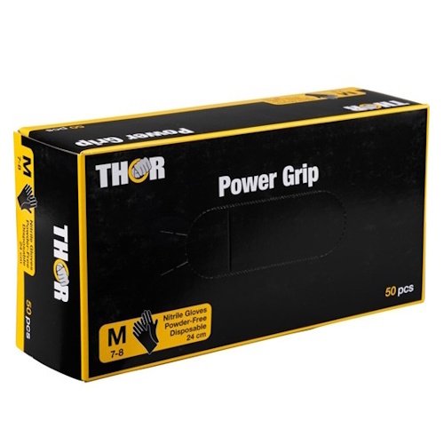 Abena THOR Power Grip nitrilinės vienkartinės pirštinės, labai stiprios, 6.5g, juodos S/M/L/XL (50vnt)